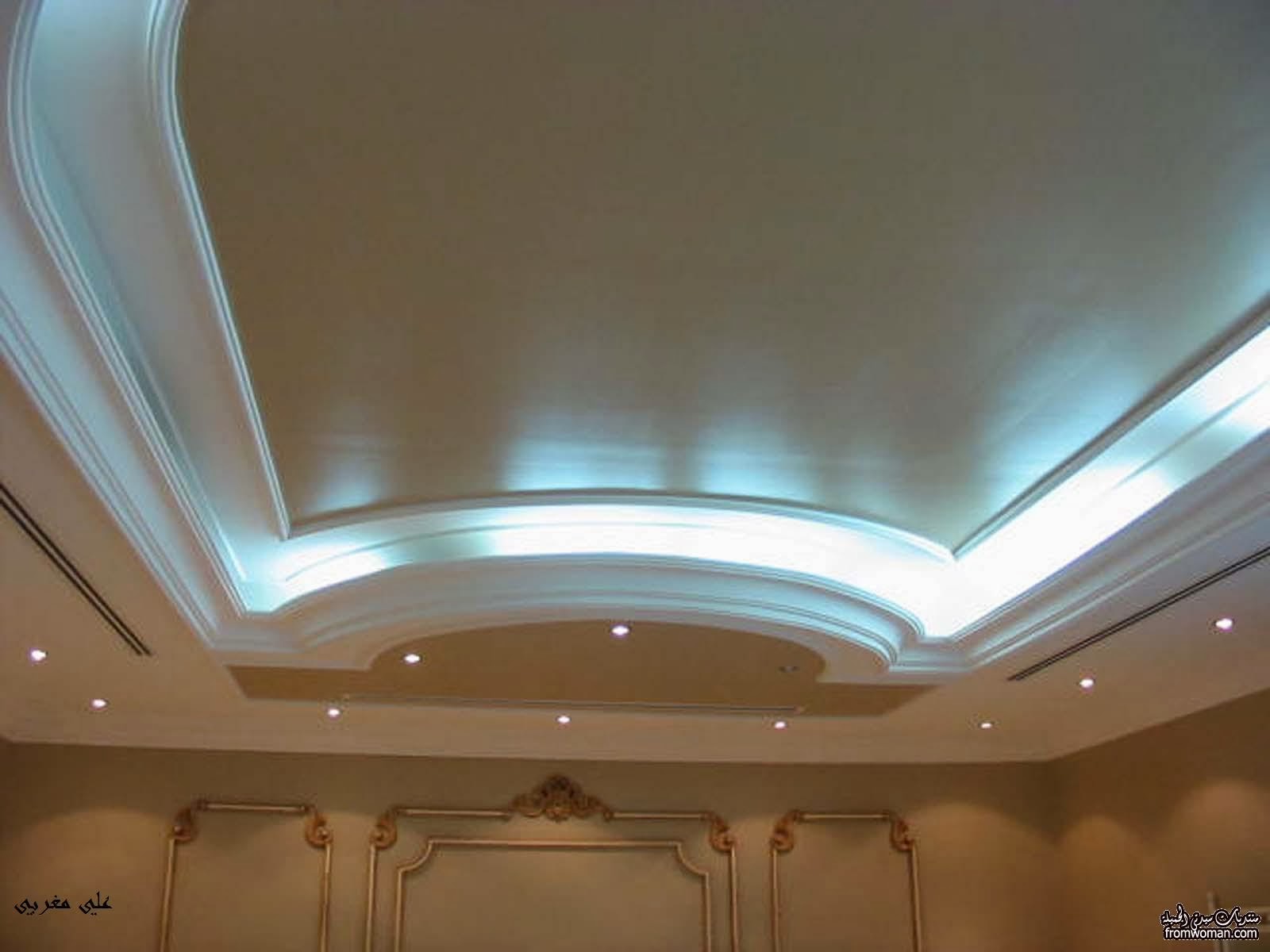 В интерьерах в стиле модерн, ар-деко или ампир прекрасно будет смотреться гипсовая лепнина. Она очень легко крепится к потолку из гипсокартона. Не стоит использовать объемные рисунки или лепнину на многоуровневых потолках, это будет смотреться уже чересчур. Округлые и причудливые формы (иногда возможен и сложный декор) подойдут к футуристичным и ярким интерьерам.